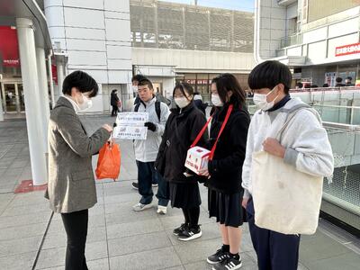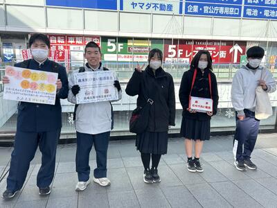 12月13日(土)に高崎駅東口にて、「歳末助け合い街頭募金」を行いました。本校生徒会役員5名が活動に参加し、募金箱を手に寄付を呼びかけました。お預かりしたお金は、高崎市社会福祉協議会を通じて県内の社会福祉施設に送られます。