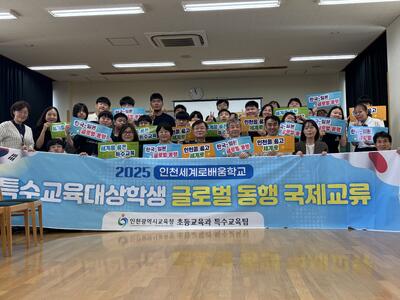 韓国の仁川広域市教育庁や高等学校等の代表生徒・職員の総勢25名が訪問来校しました。本校からは生徒会役員が生徒代表として参加しました。全体会では代表者挨拶をはじめ、記念品交換、仁川市の紹介・ダンス発表等が行われました。途中、サプライズとして、交流校の清仁(チョンイン)学校のみなさんからの心温まる動画メッセージもありました。その後、校内見学をし各校生徒は交流のクラスへ移動し、本校生徒たちと一緒に昼食を取りながら、会話をしたり、記念撮影をしたりして思い出に残る楽しいひとときを過ごしました。