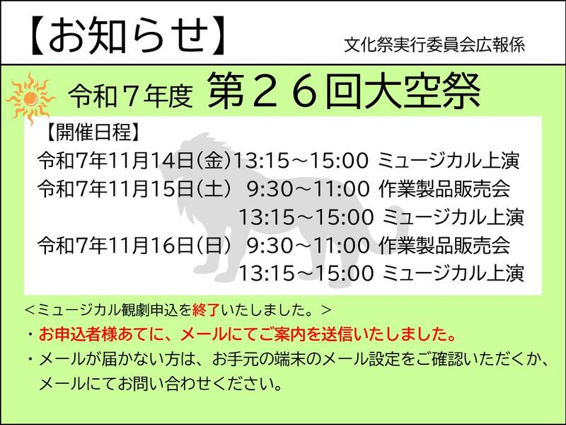 ★「令和7年度第26回大空際」についてお知らせ