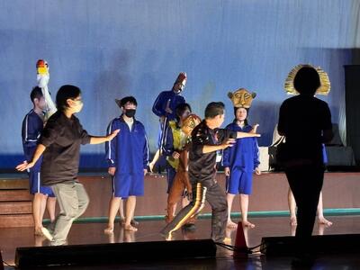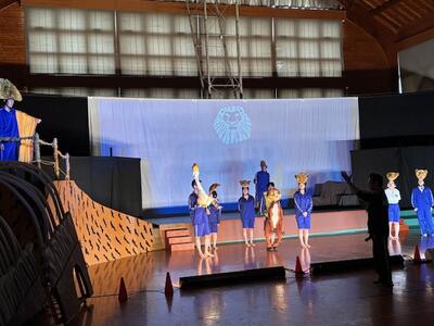 今年度も劇団ブナの木の久保田様からミュージカルのご指導をいただいています。初回となる今回は、3年生が演じるキャストの動きを確認しながら、貴重なご助言をいただきました。